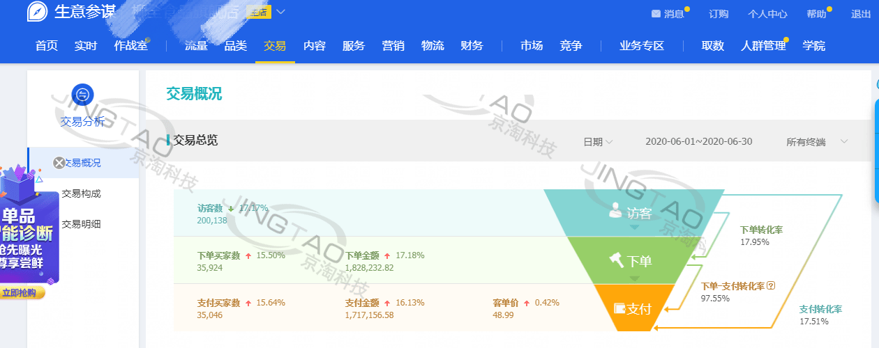 客户是广西柳州人,18年年初时与我们合作的,之前一直在做,每月月销十万不到,我们合作后,对产品进行调整,主要以利润为主,比同行产品客单价高出二块左右,每月的月销在七十多万,今年3月份,月销在336万,6月份177万。广告投入只有2%