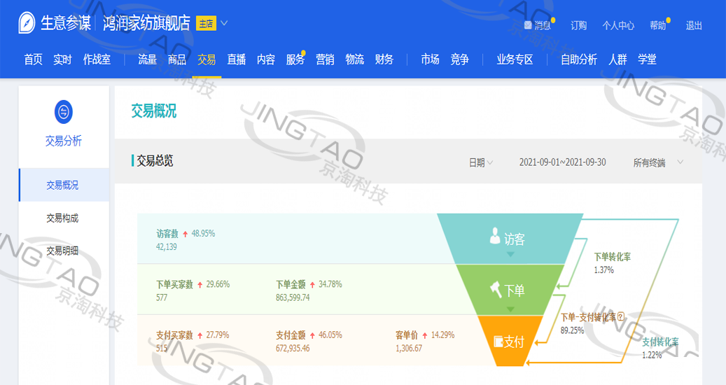 合作5年多的时间,双方之间的工作配合都非常契合,起初合作初衷就是因为京淘电商的管理机制以及运营团队,也是来杭州实地考察过的,上个月我们京淘电商搬迁品牌方还特地表达了祝贺,对于一直信任支持的老客户,京淘也从不会懈怠,下面分享鸿润家纺9月销售额。