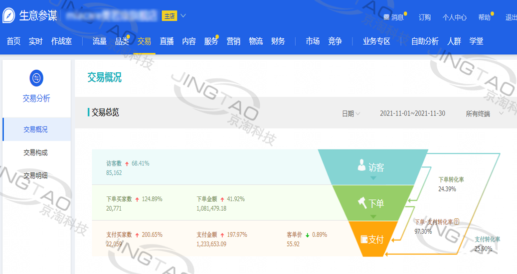 上个月双十一大促,店铺也是轻松突破百万,并且店铺的DSR评分都高于平均,7下面分享京淘电商代运营操作的品牌方美妆类目旗舰店11月的天猫代运营店铺数据。