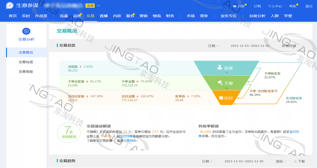 品牌方跟我们京淘电商合作天猫代运营三年多了,店铺是整店托管的,包括店铺的日常直播服务,国庆期间京淘这边也是保持这店铺直播活跃,之前也发了很多期店铺的销售额,下面一起看看11月螺狮粉的销售额吧!