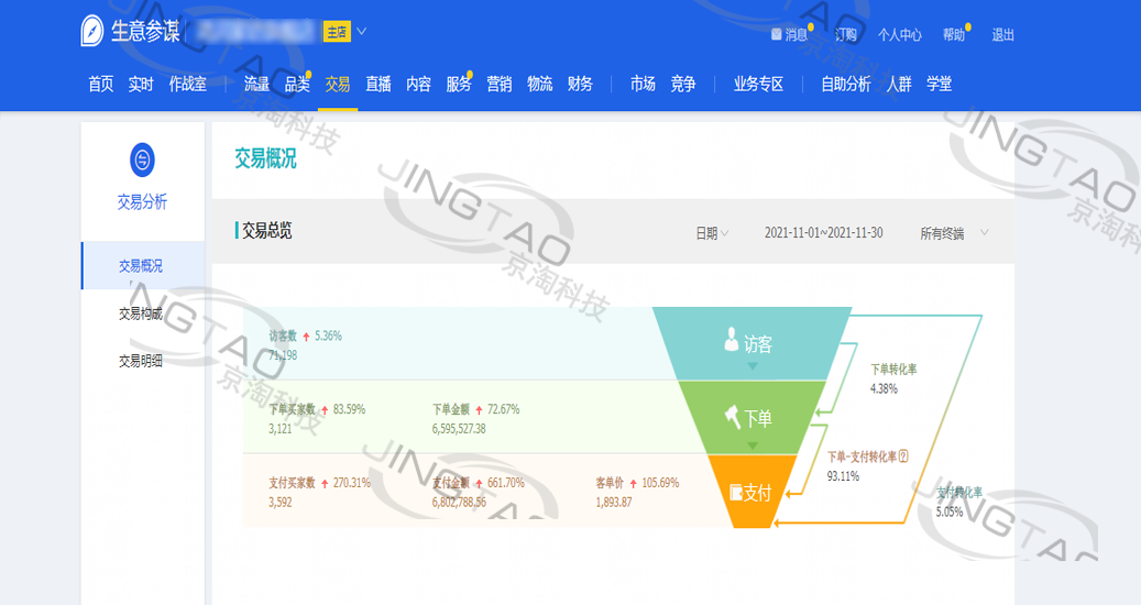 合作5年多的时间,双方之间的工作配合都非常契合,起初合作初衷就是因为京淘电商的管理机制以及运营团队,也是来杭州实地考察过的,9月我们京淘电商搬迁品牌方还特地表达了祝贺,对于一直信任支持的老客户,京淘也从不会懈怠,目前今年的11月数据已经出来了,下面跟京淘天猫代运营一起看看今年双十一后的销售额吧!